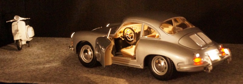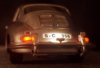 Soweit die Vorstellung meines Porsche 356. Ich würde das Modell fast wieder so umrüsten. Einzig die Kennzeichenbeleuchtung möchte ich anders lösen. Hier habe ich die LED in die Nachbildung des Rückfahrscheinwerfers eingebaut und die Stoßstange falsch herum angebaut. Vielleicht beim nächsten 356...