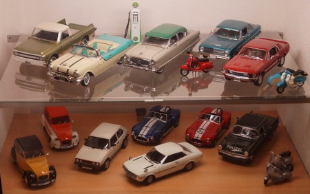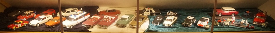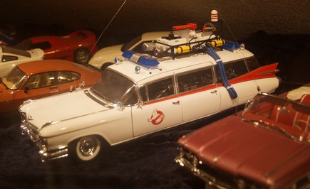 Hier mal ein Blick auf die Modelle, die ich im Laufe er letzten Jahre angeschafft habe. Dabei habe ich kein bestimmtes Sammelgebiet sondern eher den Blick auf "Beleuchtbarkeit". Im Arbeits- und Gästezimmer habe ich dazu Lücken mit Präsentationsfläche gefüllt. Angefangen habe ich so etwa vor 5 Jahren und damals den Ghostbusters-Krankenwagen zum 25 jährigen Firmenjubiläum bekommen... Der soll natürlich auch Licht bekommen !